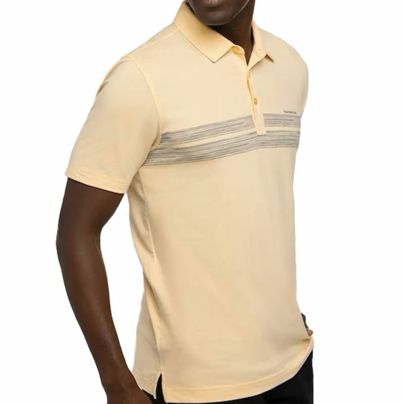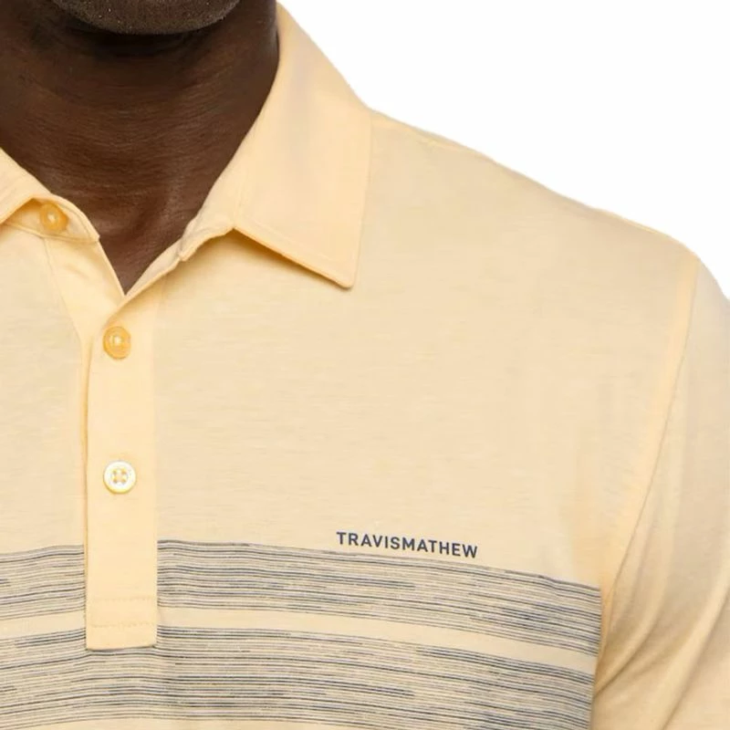 The TravisMathew Men's Lot Of Pesos Polo features a large-scale, textured chest stripes on our Eco fabrication, and has been crafted to deliver the performance elements you need. Shop TravisMathew and more at Worldwide Golf Shops!